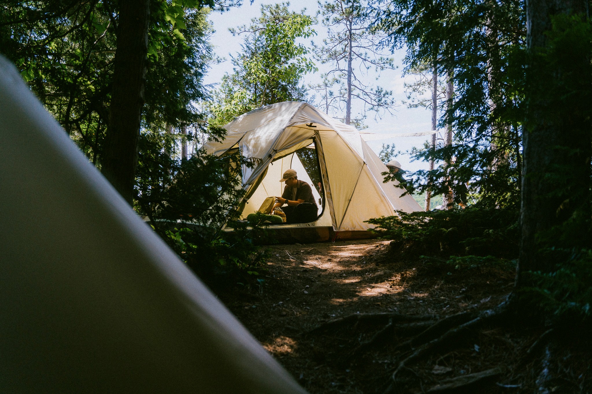 Captured in the backwoods of Quebec, this series celebrates quiet mornings, damp moss and the poetry of outdoor rituals. Camping as a return to stillness.