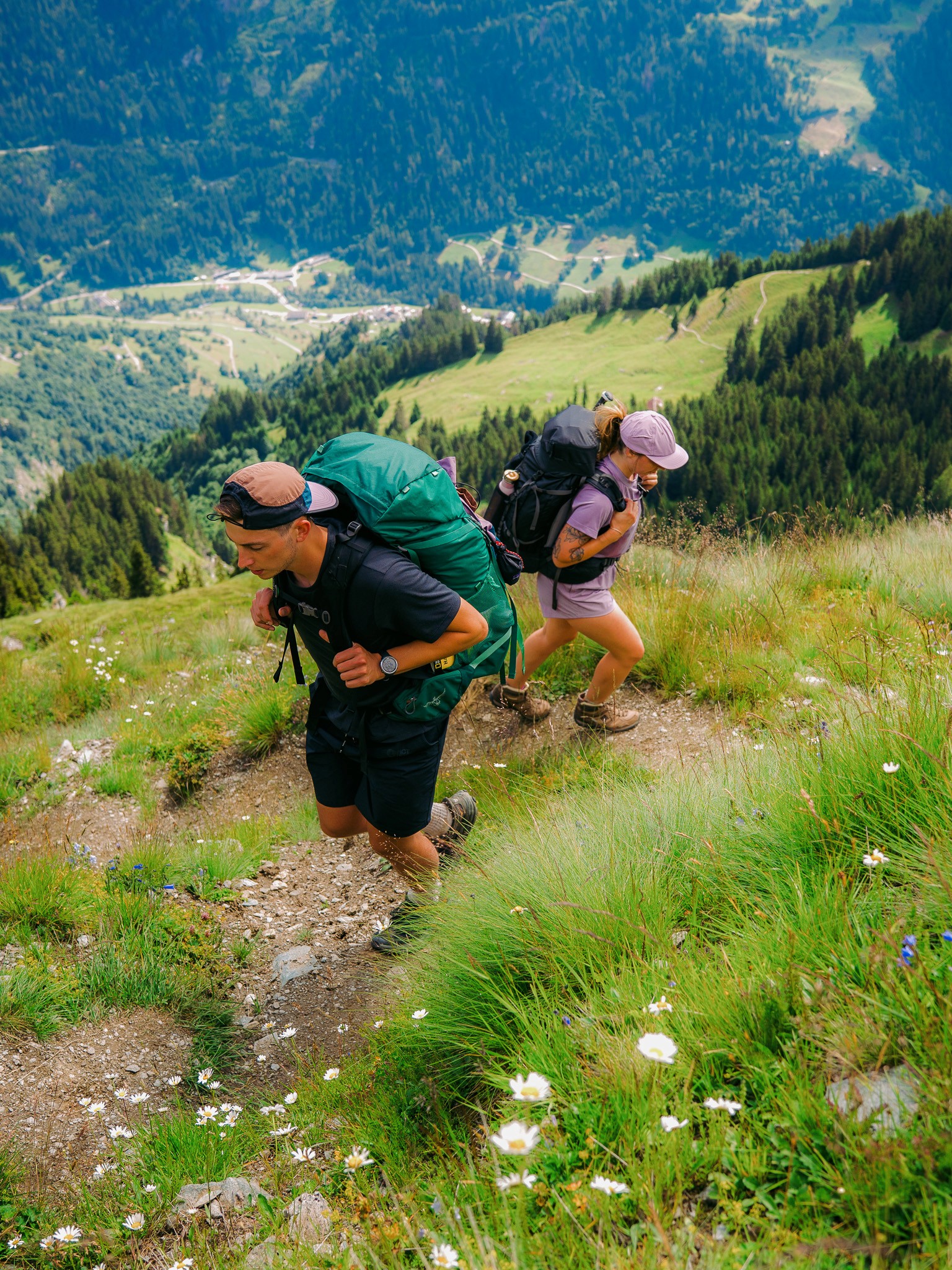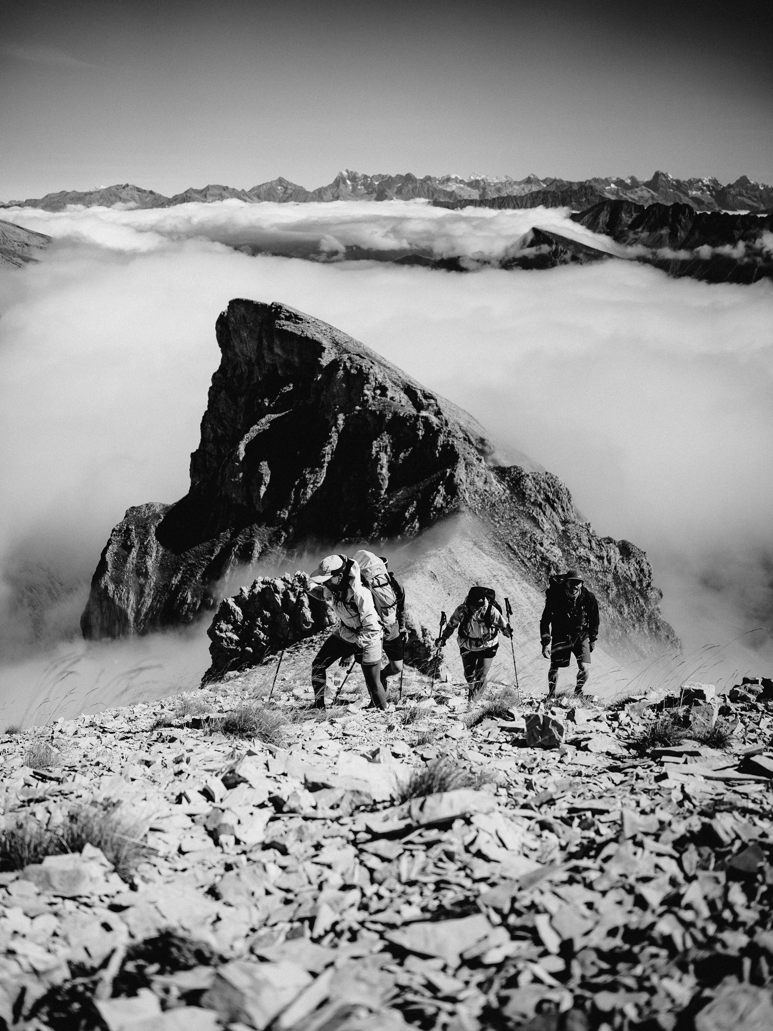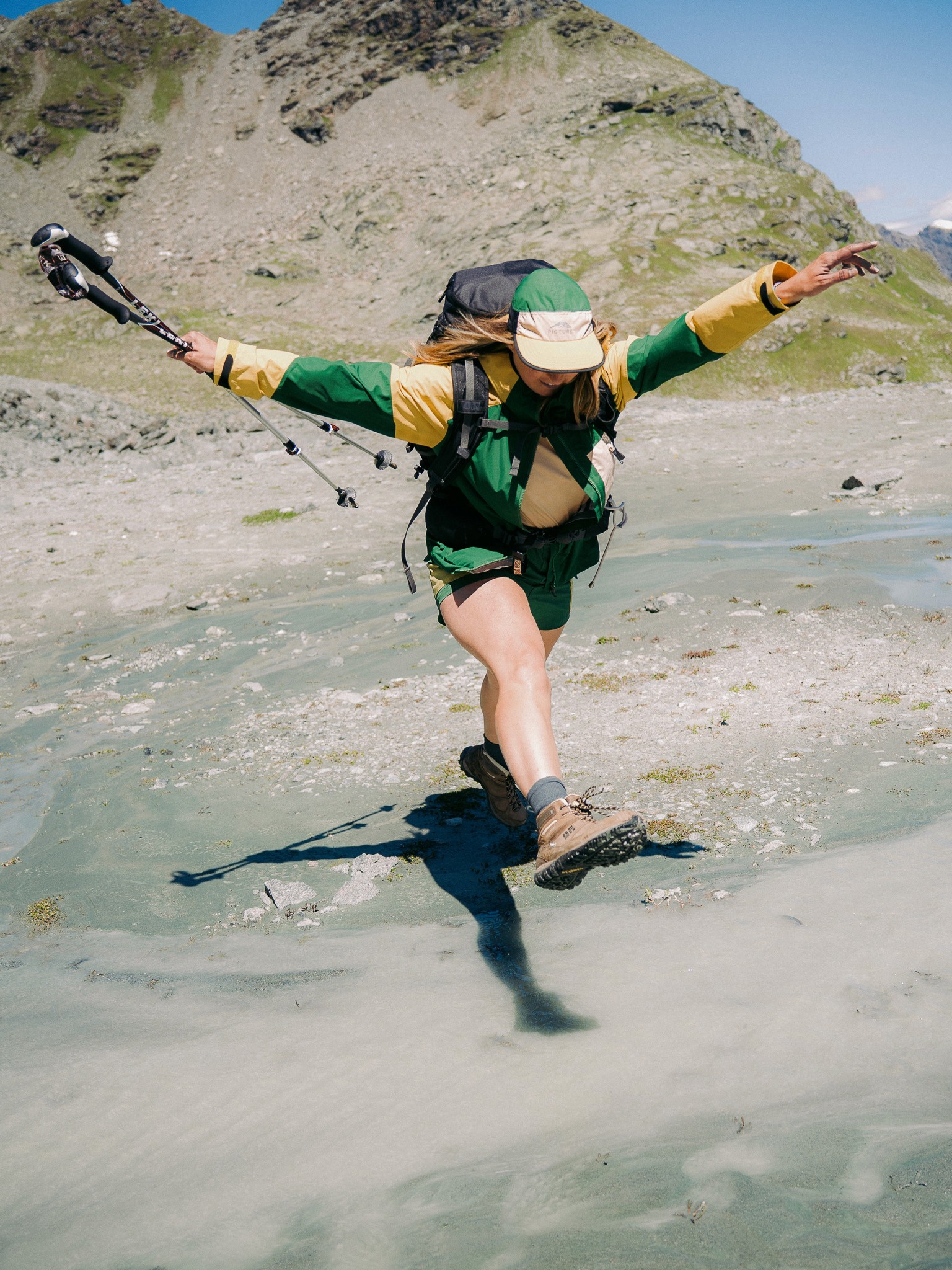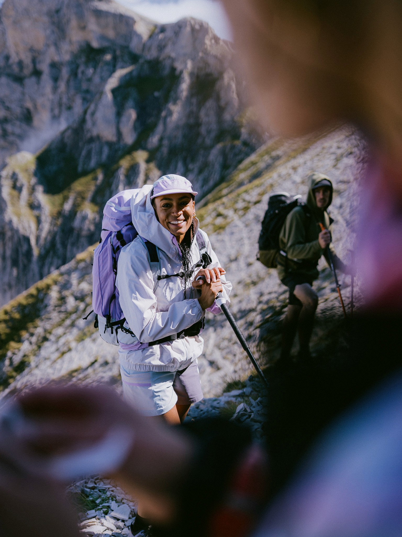 Captured in the Swiss and French backcountry, this shoot walks the line between performance and poetry. Celebrating slow hikes, soft gear, friendship and light that lasts all day.